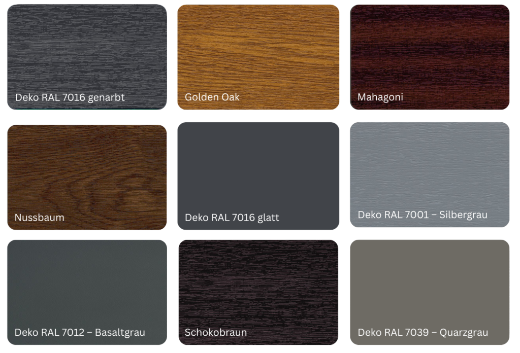Mit Hilfe der langlebigen Oberfläche GEALAN-acrylcolor® fügt sich jedes Modell stimmig in die Fassade ein.
